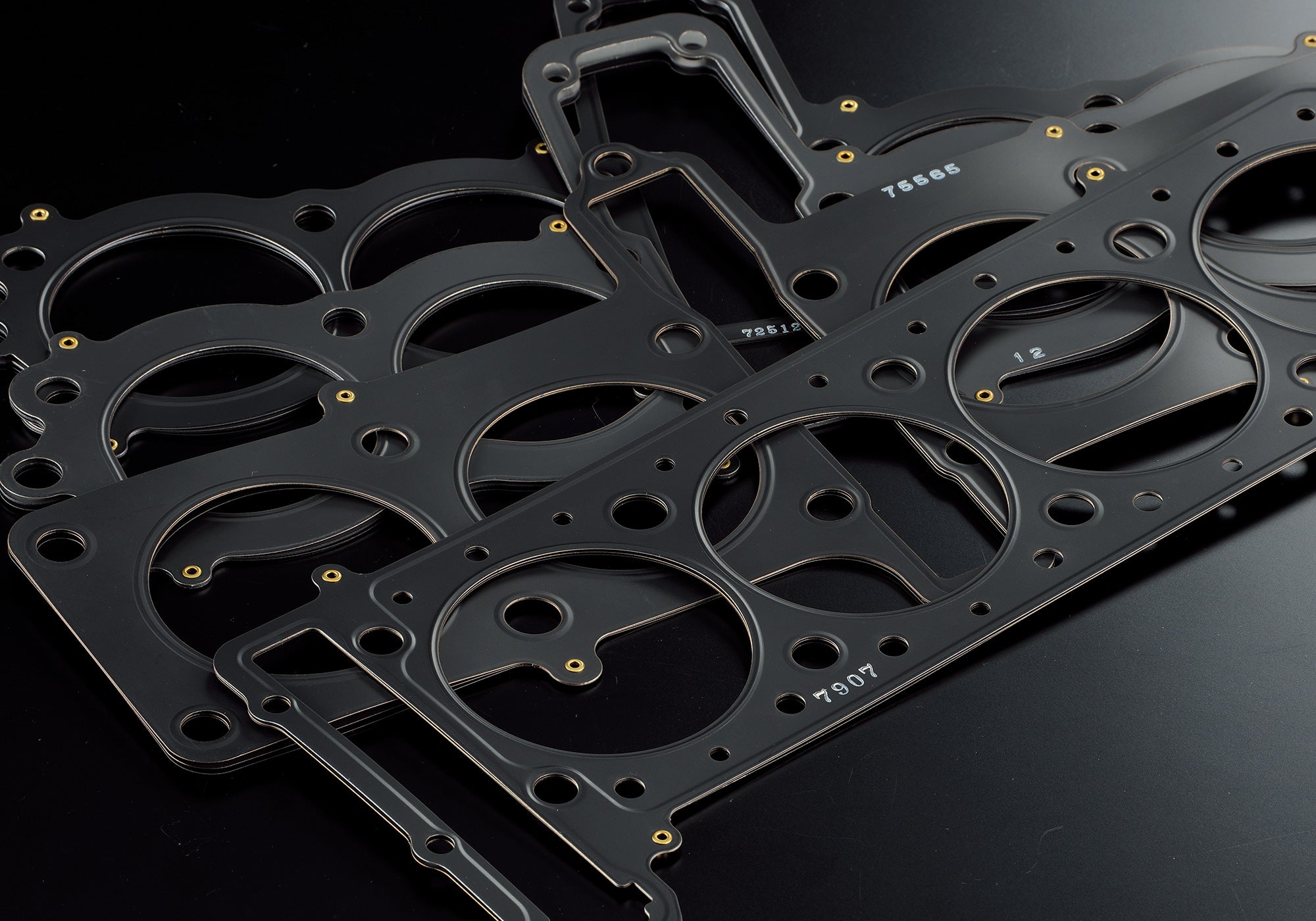 コーティングに頼った従来からのメタルガスケットではなく、密着性を上げたい部分にビード(突起)を設け断面係数や断面二次モーメントを大きくしてシールする最新構造。鋳造部の熱ひずみに対し有効で、ブランクプレートが金属である事からガスケット面を均等な平面にする精密化を実現。