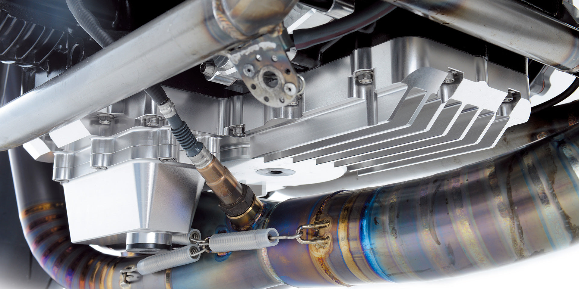 Z系エンジンのオイル油面は加速&減速時に大きく乱れます。またフルバンク状態(特に右バンク時)ではオイルポンプ吸い込み口が油面から外れて剥き出しとなり、ケース内の空気を吸って循環路に大量混入します。エンジン内部のオイル通路を始め、オイルクーラーを取り付けている車両においてはクーラーホース内に混入したエアーにより、コア層を通過するオイルは途切れ途切れとなって冷却性能を大きく低下させます。このキャビテーション問題は深刻で、現行マシンの多くが空気の混入を防ぐべくオイル吸い込み口を延長させた深底オイルパンを採用し解決しています。トロコイドオイルポンプKITは単体で使用しても十分な効力を発揮しますが、より進化したチューニングエンジンに最適たる深底オイルパンをラインナップしました。すでにトロコイドオイルポンプKITを使用されているエンジンにはボルトオンで取り付けが可能です。※1